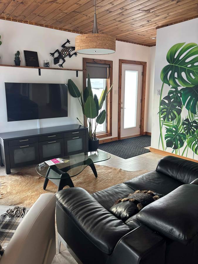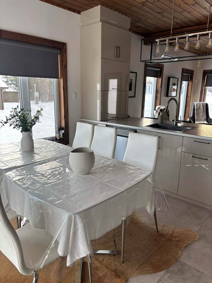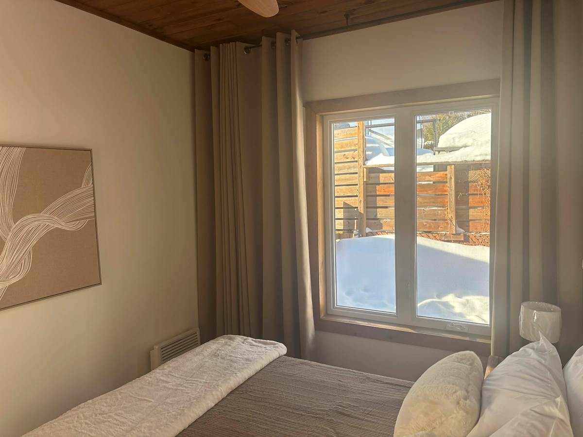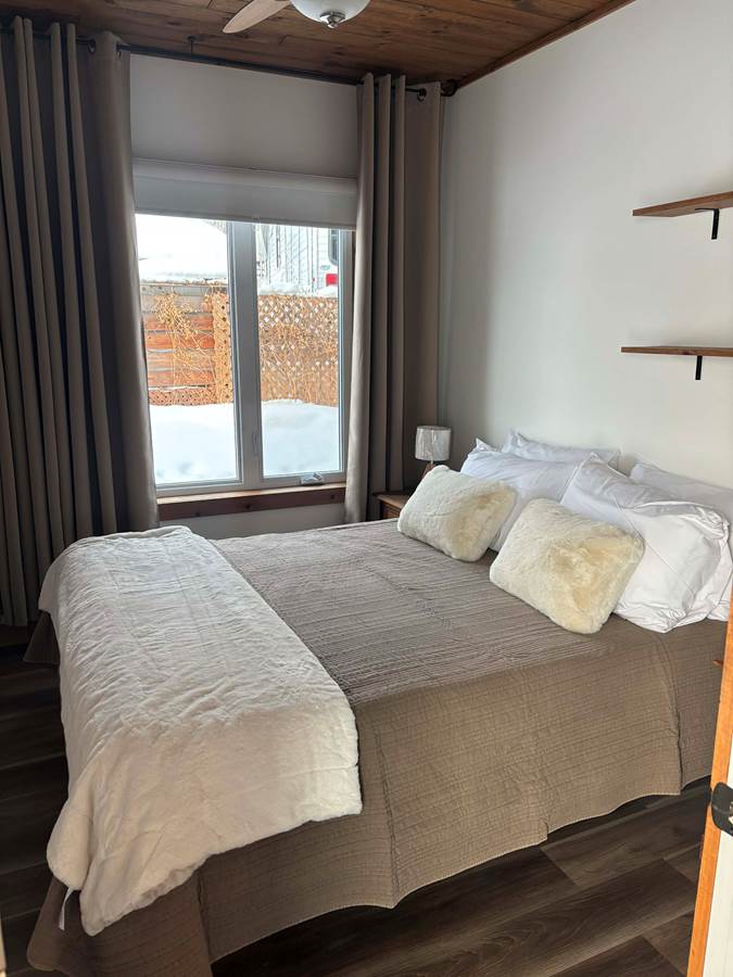 Ce chalet convient pour 5 personnes , il peut accueillir 1 personnes enfants de plus pour un total de 6 personnes, muni de deux chambres, d'un divan lit en cuir au salon et d'une table à manger pour 6 personnes, ventilateur de plafond dans chaque pièce. Les enfants sont admis gratuit, supplément après 4 adultes. Vous n'avez rien à emporter tout est inclus: literie 250 pouces au fil, vaisselle, poêle à fondue et ou à raclette.